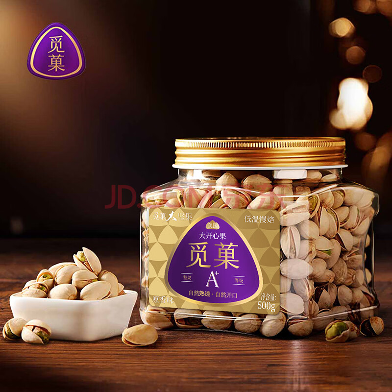 觅菓(miguo)大颗粒开心果原香味无漂白特色健康坚果炒货休闲零食500g/罐