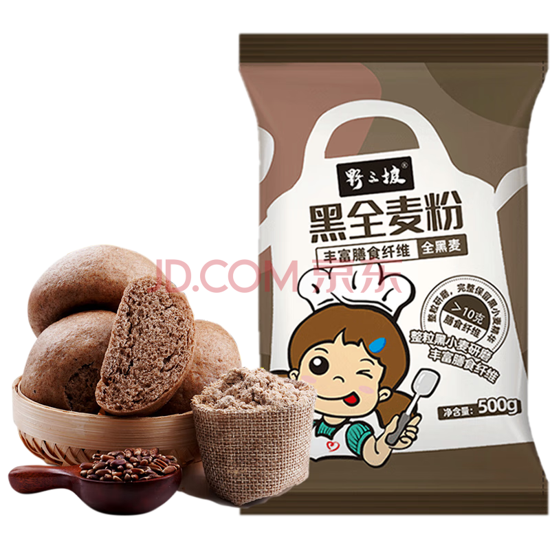 野三坡石磨黑全麦面粉 黑小麦全麦面粉 粗粮杂粮面粉 烘焙原料 1斤/袋