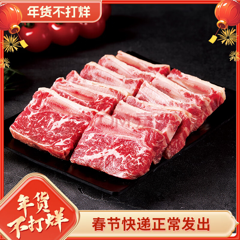 鸿亮 黑椒牛仔骨400g*5袋 静腌牛排 烧烤食材 牛肉牛排骨 半成品生鲜