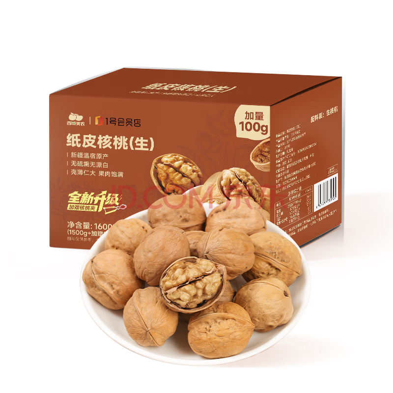 西域美农新疆温宿185纸皮核桃1.6Kg(赠核桃夹)无防腐浸泡送礼孕妇零食