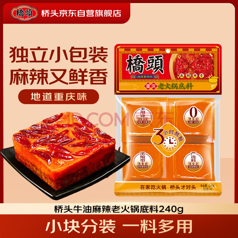 桥头麻辣牛油火锅底料小块240g(60g*4袋)重庆底料麻辣烫调料