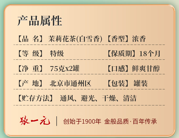 张一元茉莉花茶特级茉莉白雪香150g(75g*2罐)配手提袋 年货送礼礼赠佳选