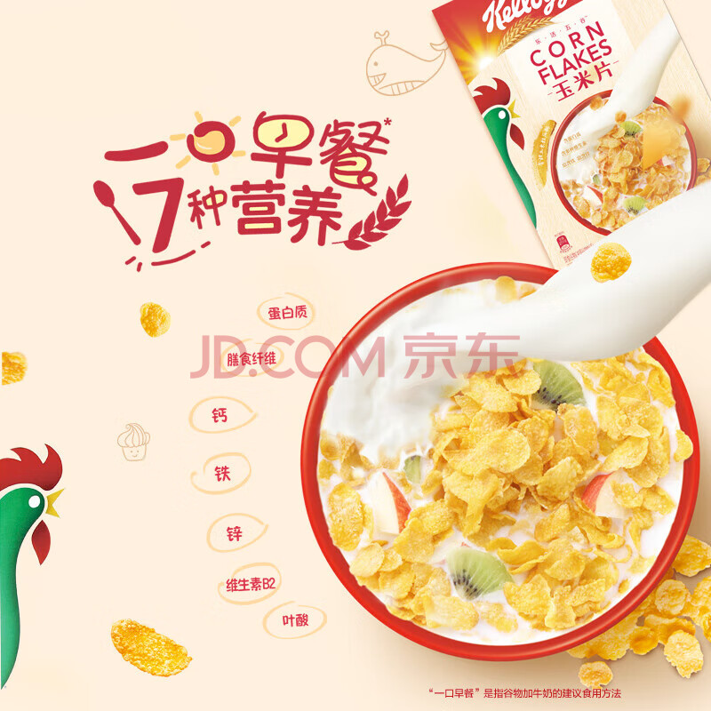 家乐氏(Kellogg)进口玉米片500g/盒大包低脂麦片谷物圈冲泡即食营养谷物早餐代餐