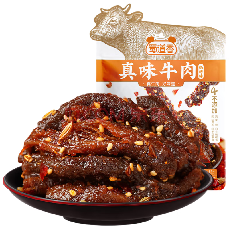 蜀道香 真味牛肉干 烧烤味88g 四川特产 肉干肉脯 休闲零食 0添加淀粉