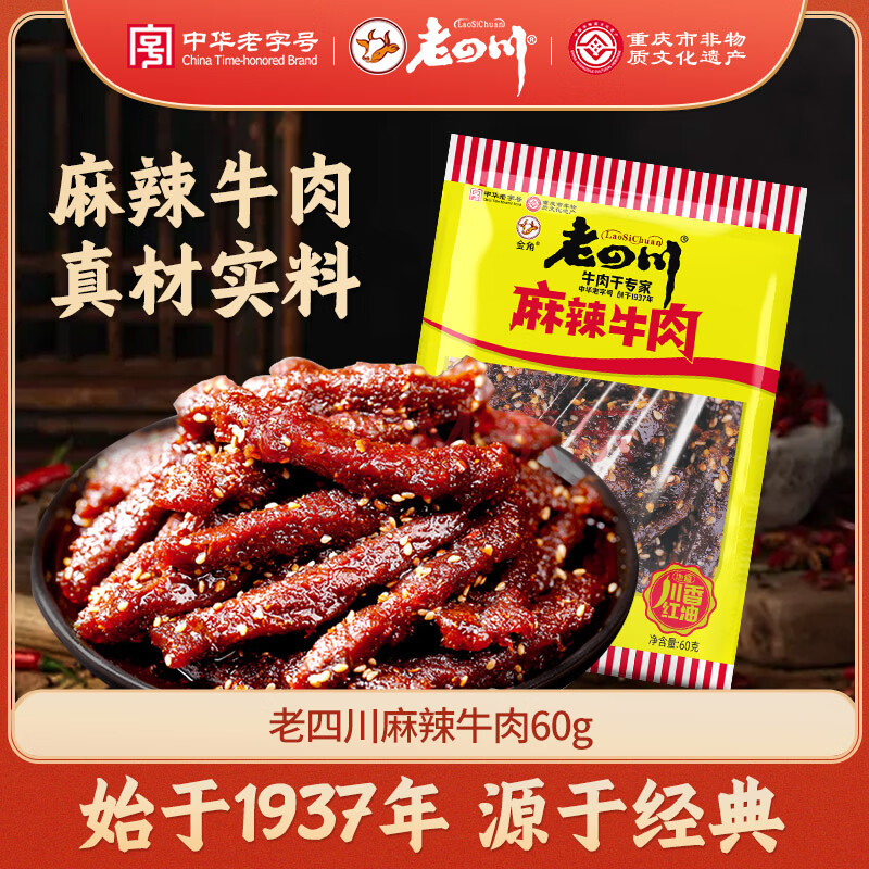 老四川 麻辣牛肉60g 休闲零食 四川特产金角中华老字号