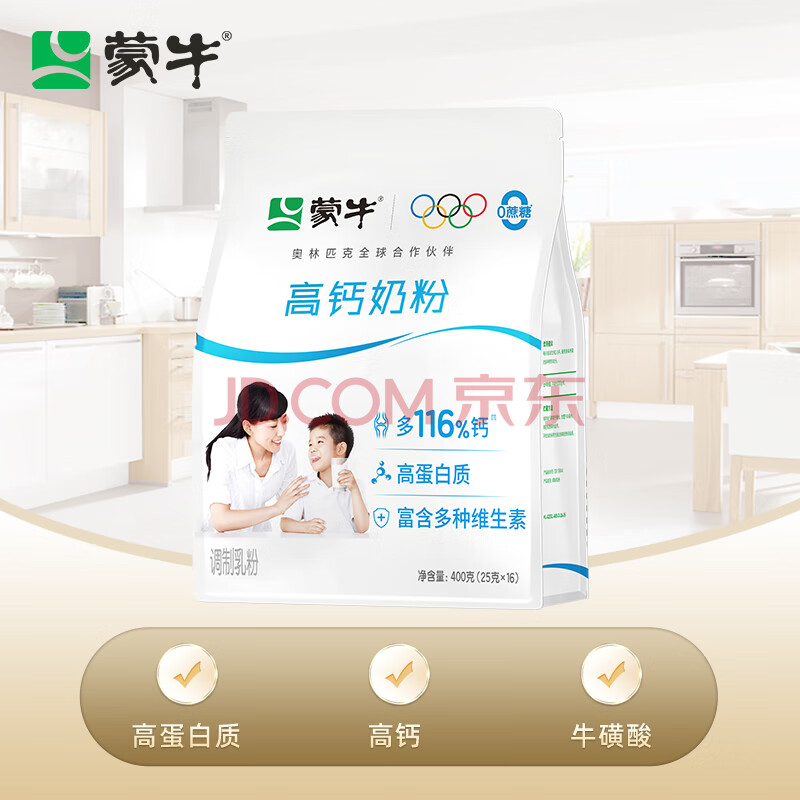 蒙牛高钙成人奶粉400g 营养早餐 便捷条装