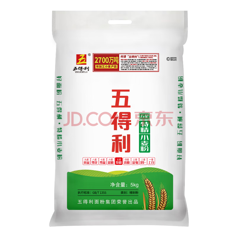 五得利面粉五星特精小麦粉10斤 多用途馒头包子饺子面条