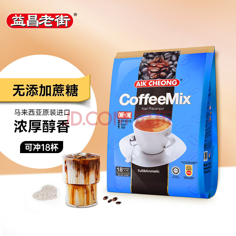 益昌老街(AIK CHEONG OLD TOWN)2合1无添加蔗糖 速溶咖啡粉 18条270g
