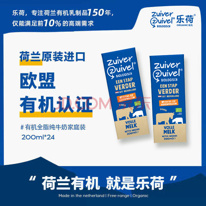 乐荷荷兰进口 有机全脂牛奶200ml*24盒 3.7g优质乳蛋白 三重有机认证