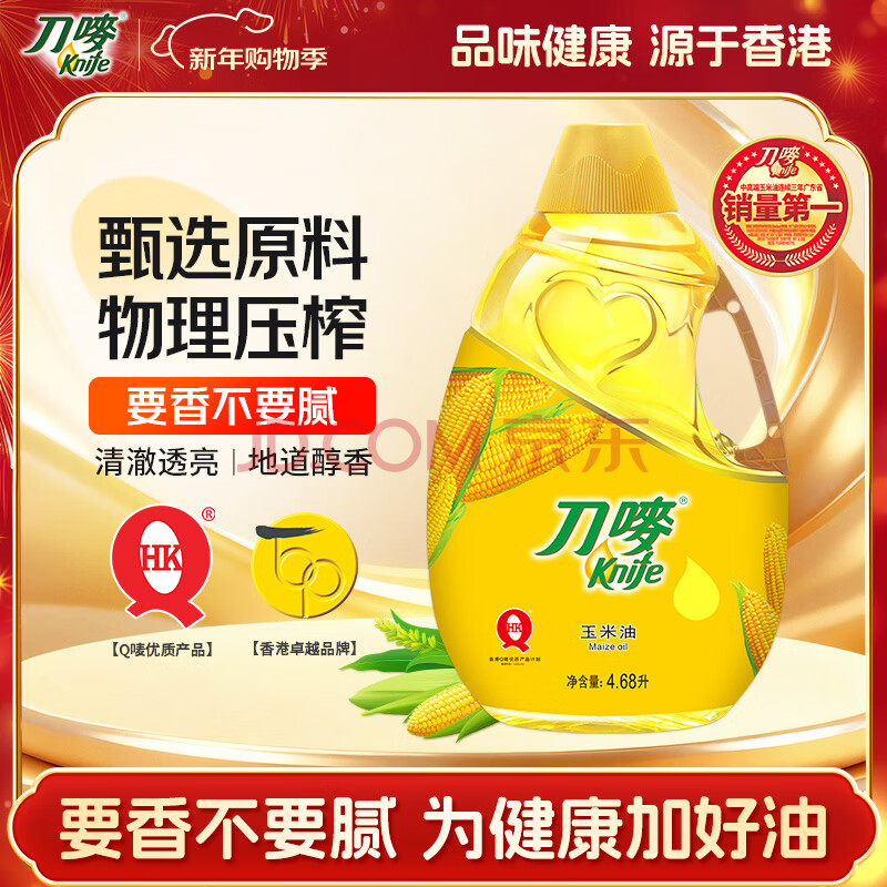 刀唛(Knife)玉米油4.68L 非转基因物理压榨一级食用油 香港品牌