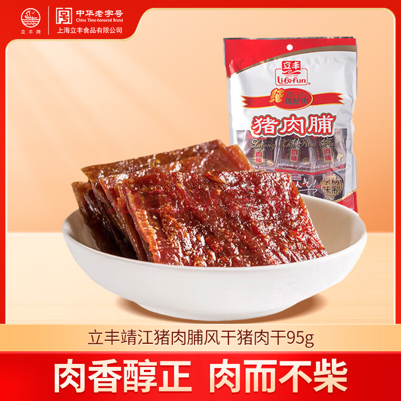 立丰(lifefun)靖江猪肉脯风干猪肉干95g 袋装 中华老字号 上海特产 休闲零食