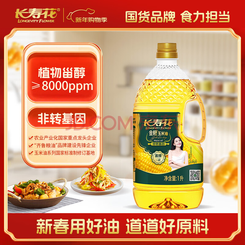 长寿花金胚玉米油 1L 非转基因压榨一级食用油 家用烘焙搭档 年货热卖