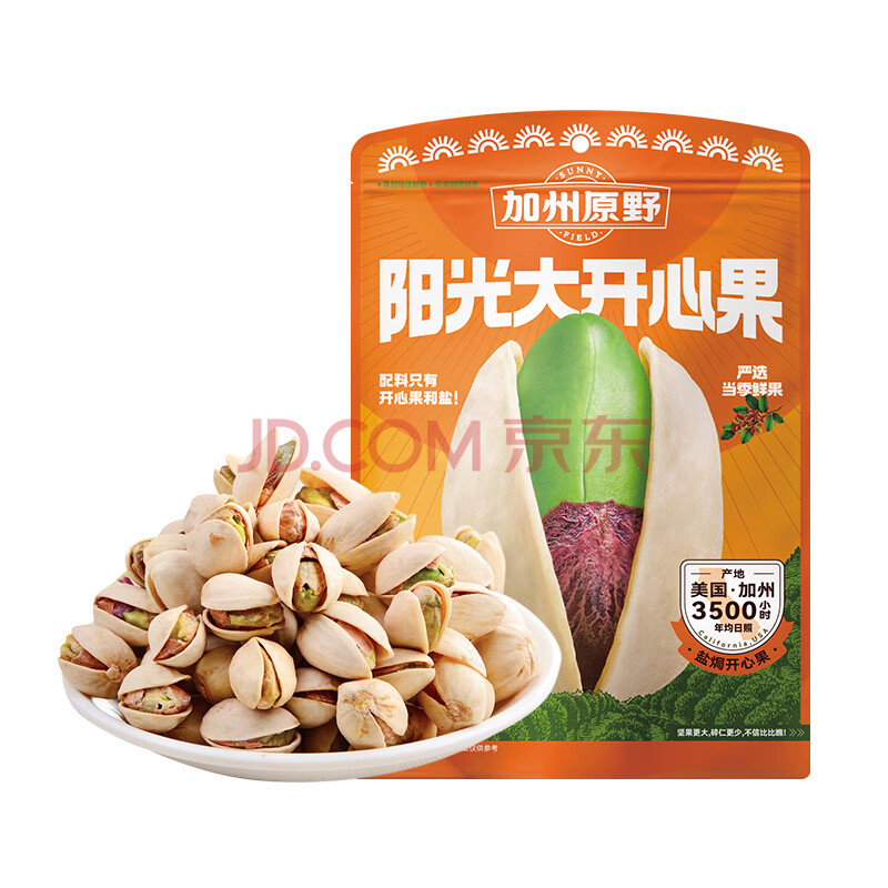 加州原野开心果100g/袋 无添加原味京东自营年货坚果炒货休闲办公小零食