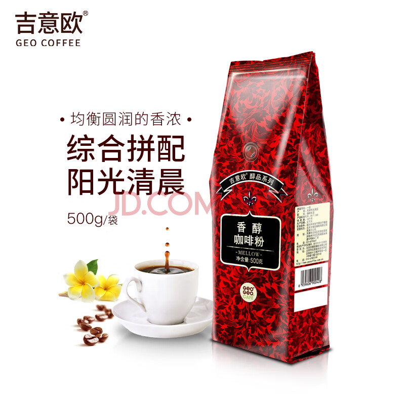 吉意欧香醇咖啡粉500g浓醇无酸阿拉比卡豆非速溶黑咖啡中烘黑咖啡